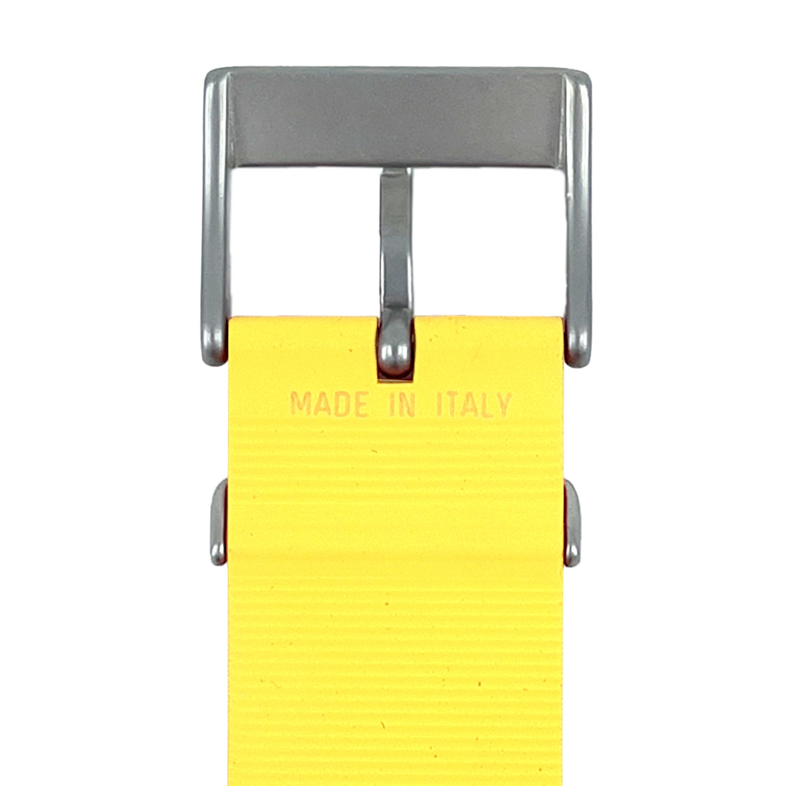 Bertucci® Italian Rubber NATO bands are a clean, timeless and functional design. Precision manufactured from a proprietary high performance rubber material to ensure extreme comfort, durability & pliability. They are salt water, chemical and UV resistance, non-toxic, and non-skin irritating. Utilizing an authentic two layer G10 NATO design permits use with any 22 mm lug opening watch. Equipped with matte stainless steel hardware for buckle, keepers & extra NATO keeper. The material will naturally form to your wrist - with no break in time and eliminate wrist roll. One size fits all to larger. Resists soils & stains, will not UV fade and is easy to clean. Fits any A-2, A-3, A-6, A-7, B-1, D-1, D-3, G-1 Bertucci® case types and other 22 mm lug width opening watch brands. 2 year warranty. Available in 22 authentic sport and field colors. Made In Italy.